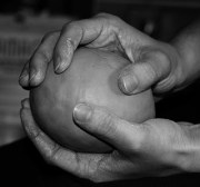 This is your basic lump of clay – therein lies the idea, the development of that idea and its final product, but at this stage it is just potential. This is both a lovely and frustrating stage – you can quite enjoy just letting the ideas and potential swirl around inside of your head, because it’s much more pleasant than actually doing the work of shaping and building them into something. But when you have decided what it is going to look like and be, you want the pot to just emerge, fully formed, without all the hard work required to make thus actually happen. But you have to do the work, so you wedge and knead the clay – you start your reading and thinking and scribbling – and you start rolling out your coils or the strands of your argument and begin joining them together.